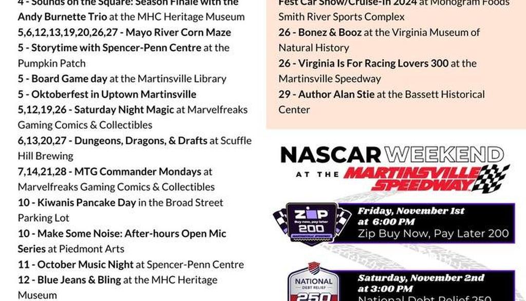 Check out the community calendar of various events, craft fairs, performances and so much more! #martinsvillelife #MoveToMartinsville