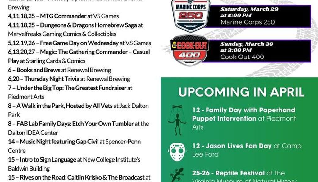 March events in Martinsville & Henry County! #MoveToMartinsville #martinsvillelife VisitMartinsville